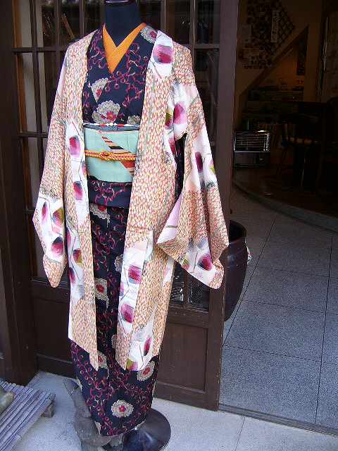 そしてチューリップ柄の銘仙羽織りを合せたコーデです。
