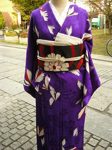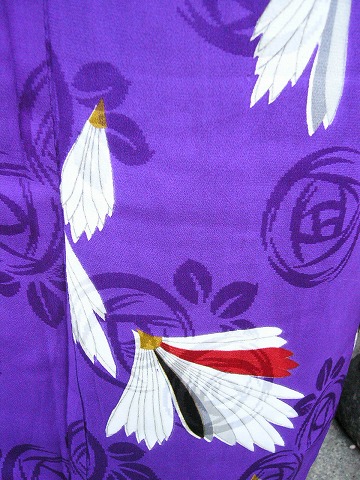 この紫の綸子の着物、地紋にバラの花が!