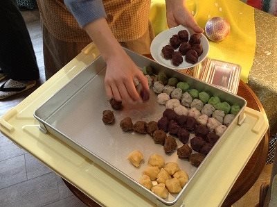 きょうは、お持ち帰り用と合わせて、全部で8個まるめます。