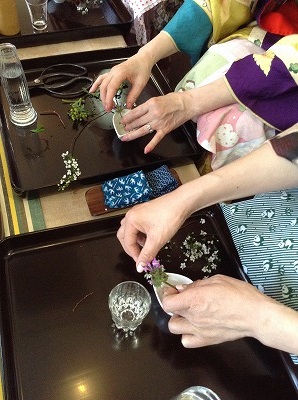 (講座内でお花を小さな瓶などに活ける作業をしますが、