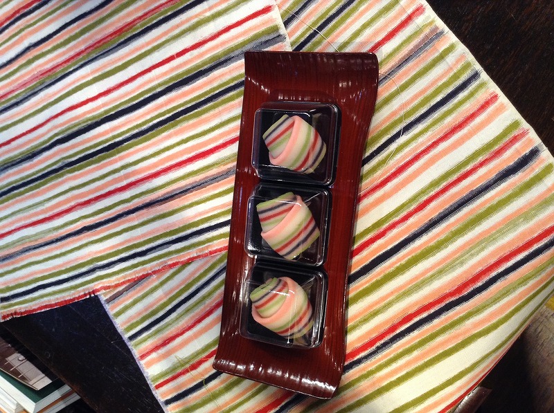 *銘仙生菓子 しましま柄の銘仙をモチーフにしたお菓子。