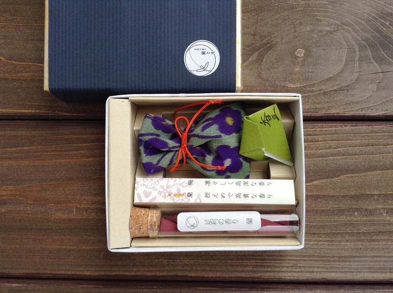 写真は蘭と月、オリジナルお香と銘仙匂い袋のセット。(なぜか、最近写真が縦表示出来ず、見づらくてスイマセン。)