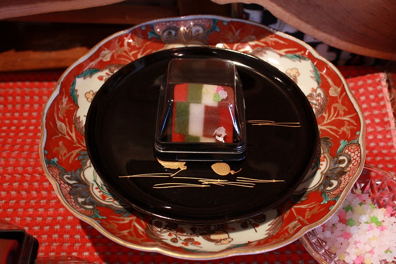 クリスマスカラーの銘仙柄上生菓子が届きましたーーー!!!