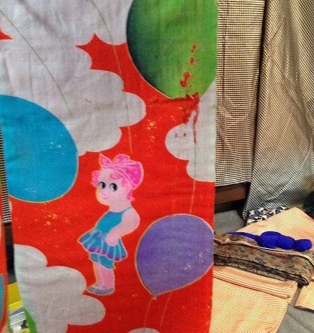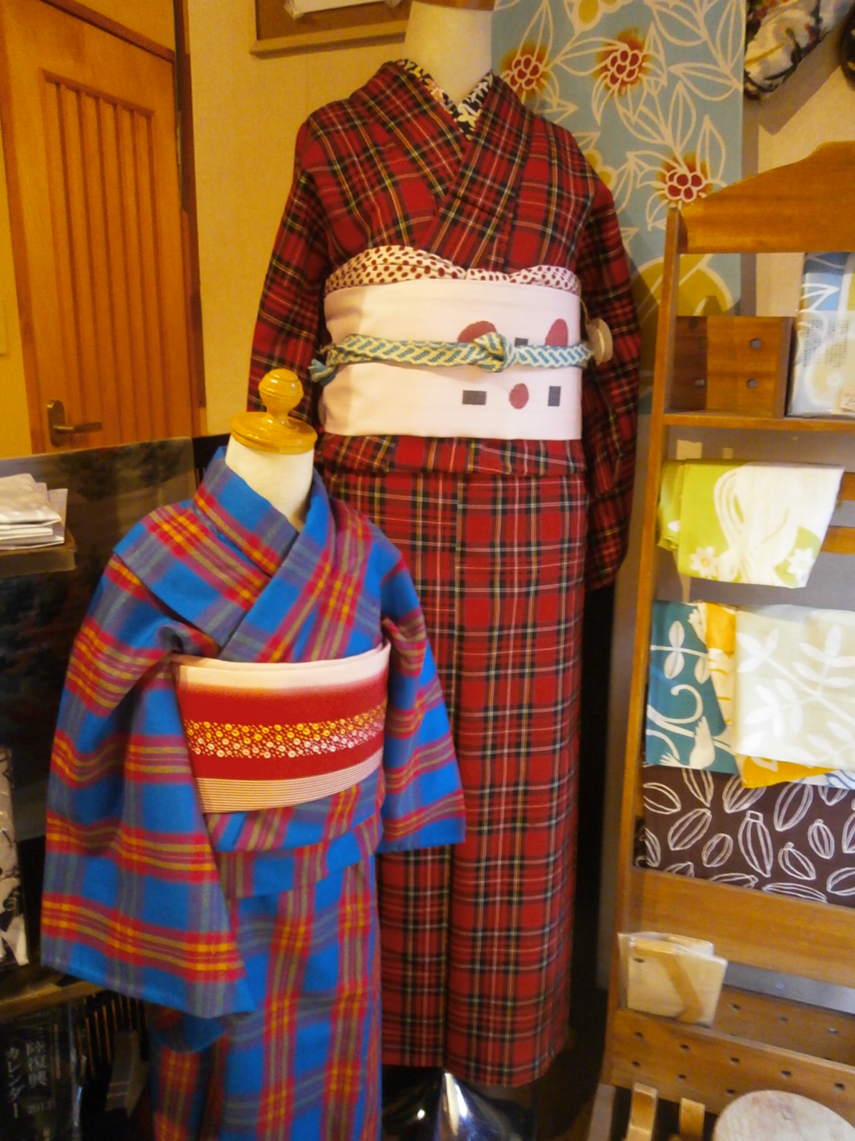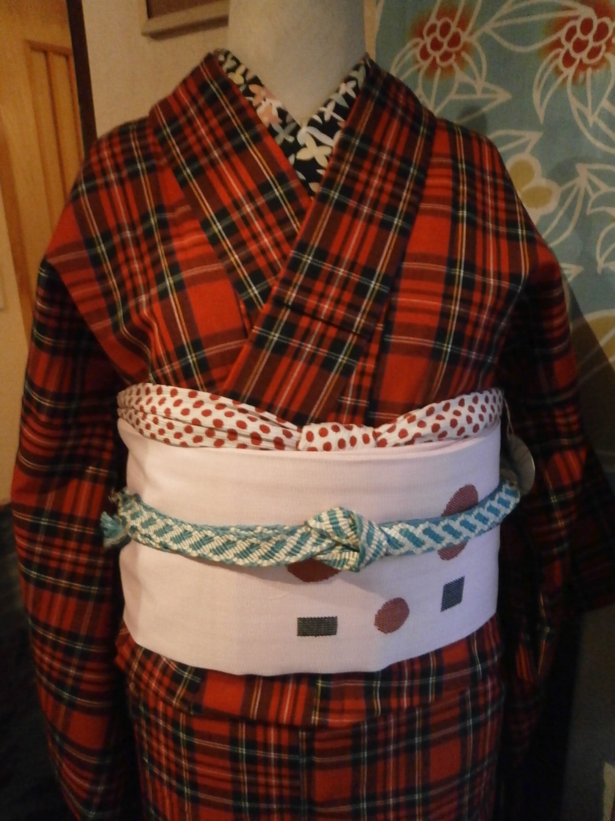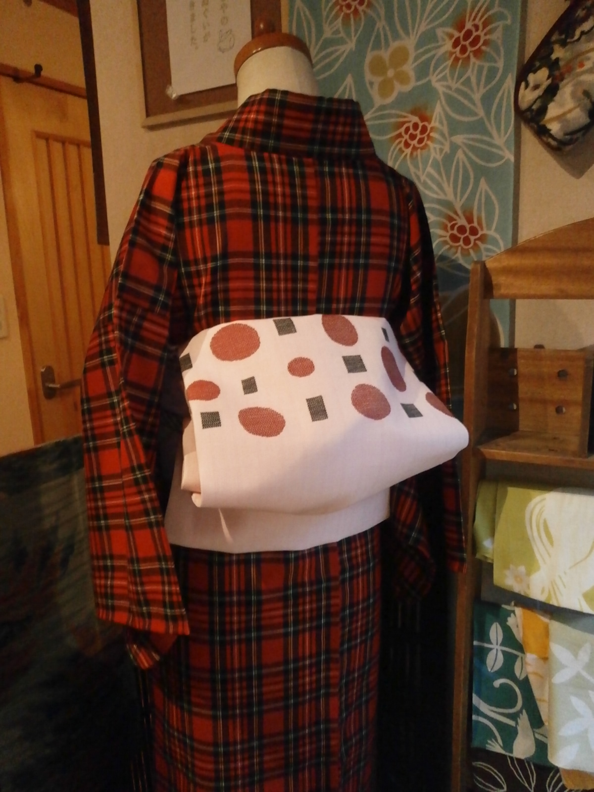 着物:赤色タータンチェック(ウール) ¥3000(小穴有りのため)