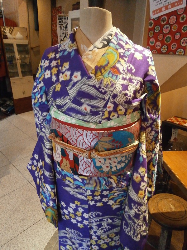 帯:名古屋帯・藍色・更紗風模様 ¥10500