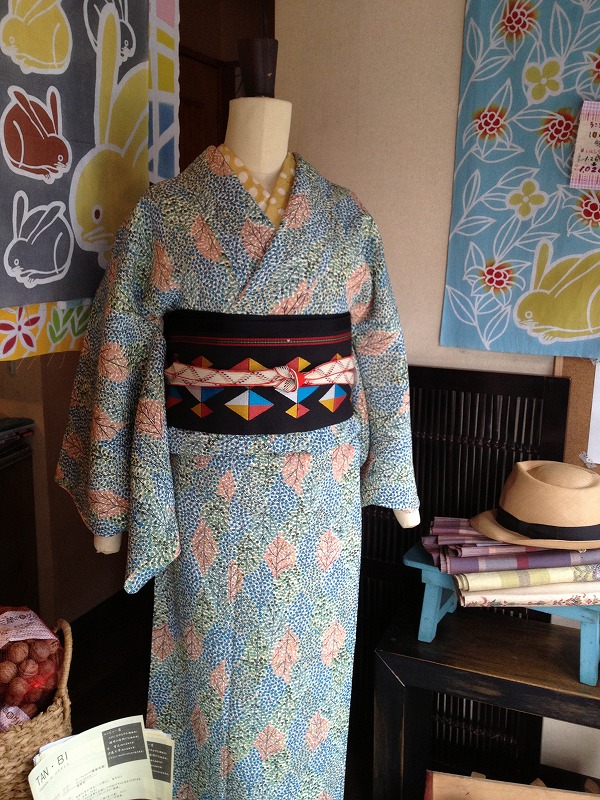 積み木柄の半幅帯を合わせました。
