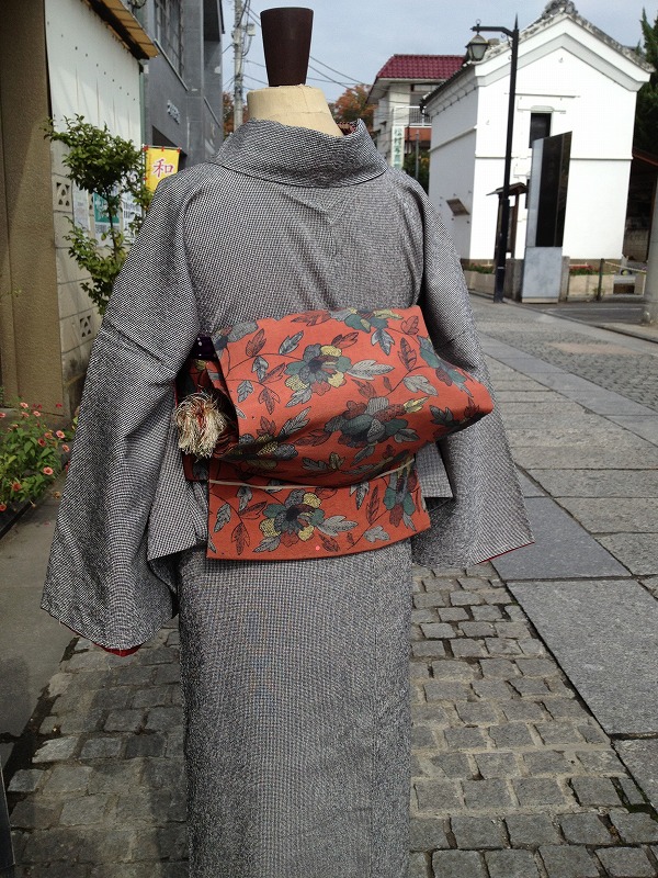 れんが色の名古屋帯を合わせました。