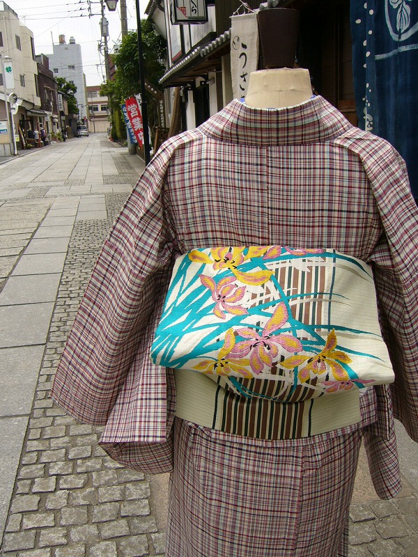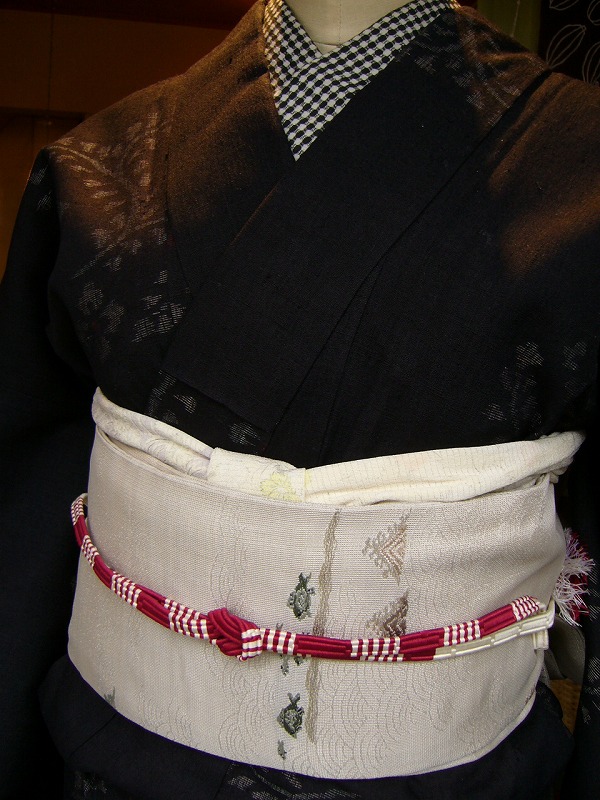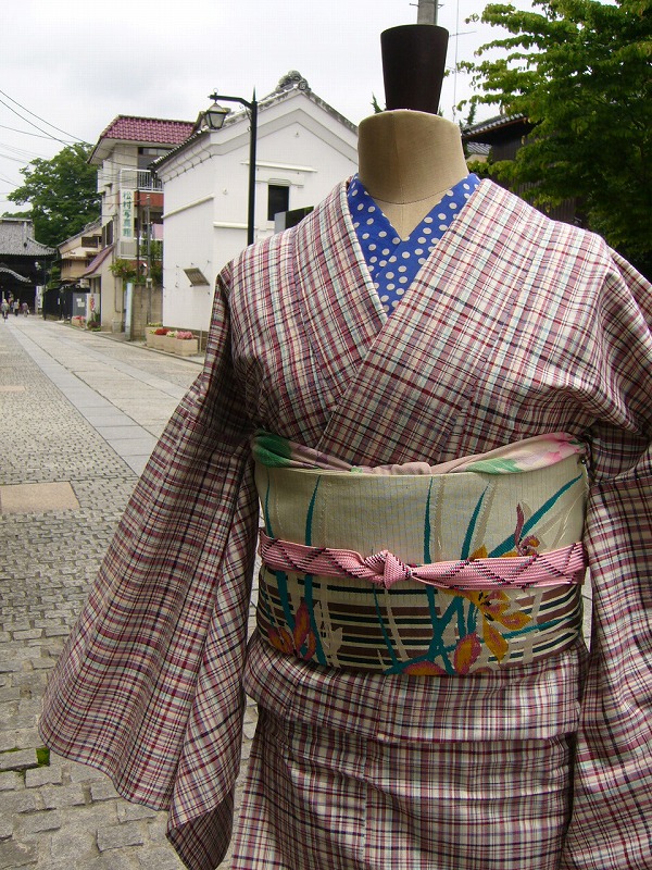 半襟にチェックを持ってきてみたり(あれ、ちょっとずれてますかね?スイマセン。)