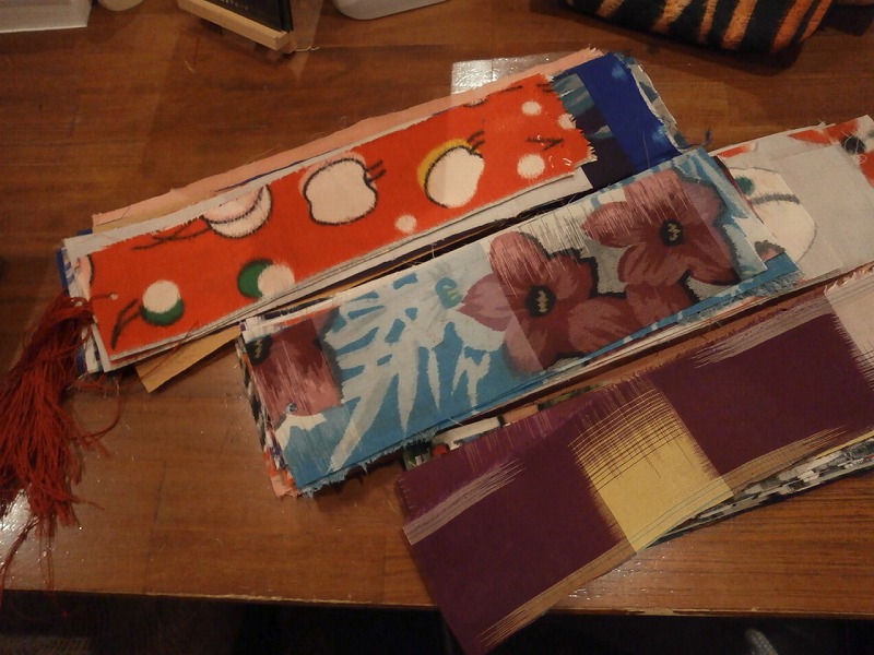 ちょっと難有りだったり、使い道に困っていた銘仙のハギレ達で。