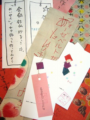 ということで先日試しに銘仙で作った短冊を、みなさまに協力してもらって古くて新しい七夕飾りを作ろうと思い、ワークショップと言うほどではないのですが、日にちと時間を決めました。