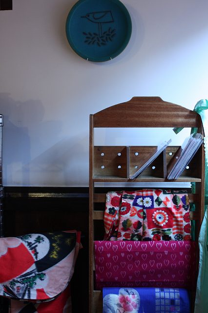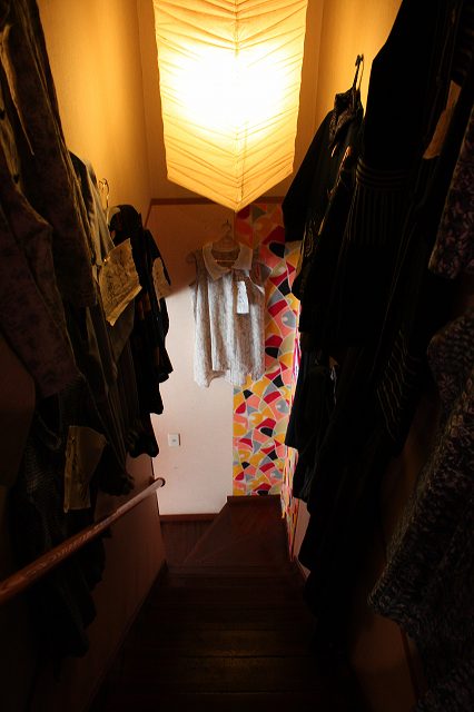 階段の両脇には洋裁教室の生徒さんの作品。