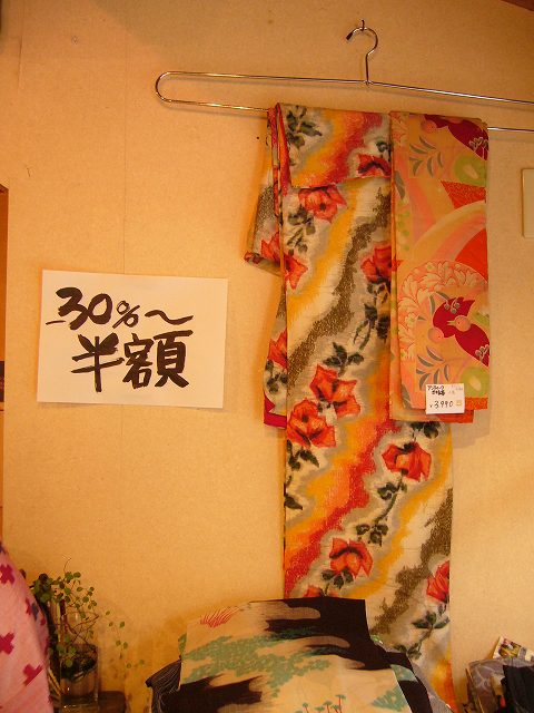 着物、帯、小物類、骨董小物などなどお店の中の商品が30%~50%の割引セール。