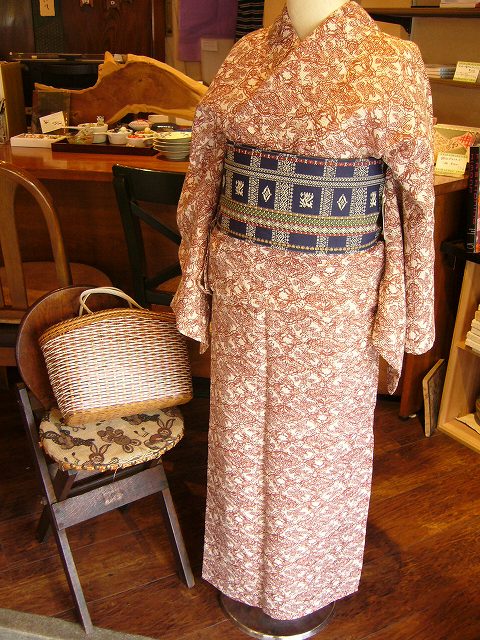 レンガ色更紗風の染め ¥10500より半額