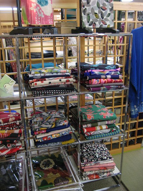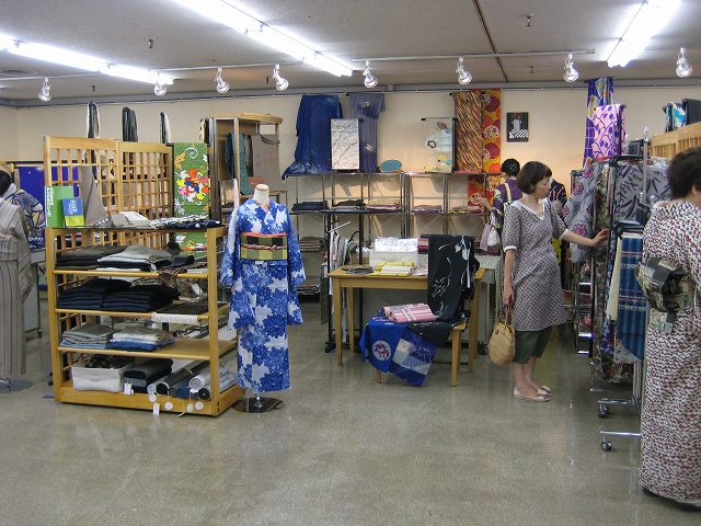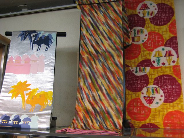 「おきものがたり」銘仙コーナーはこんな感じ。