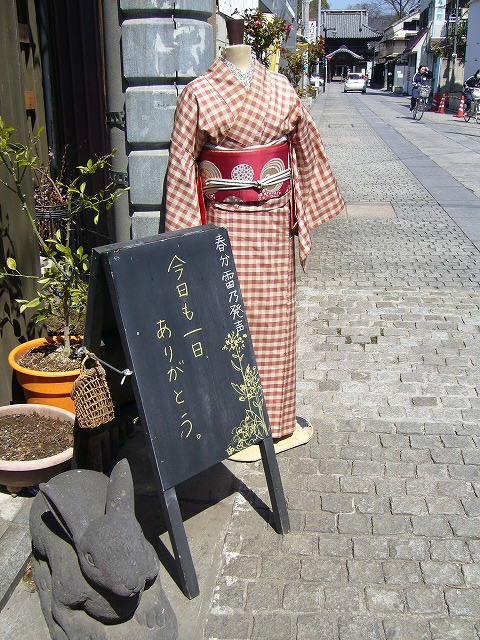 できるだけ毎日着物を着て過ごしてみようと思って昨日より少し明るめの着物でいしだたみにおります。