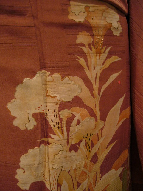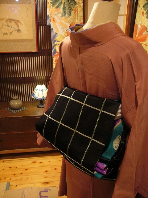 帯揚げ れんが色 格子(お召し着物を解いたもの)