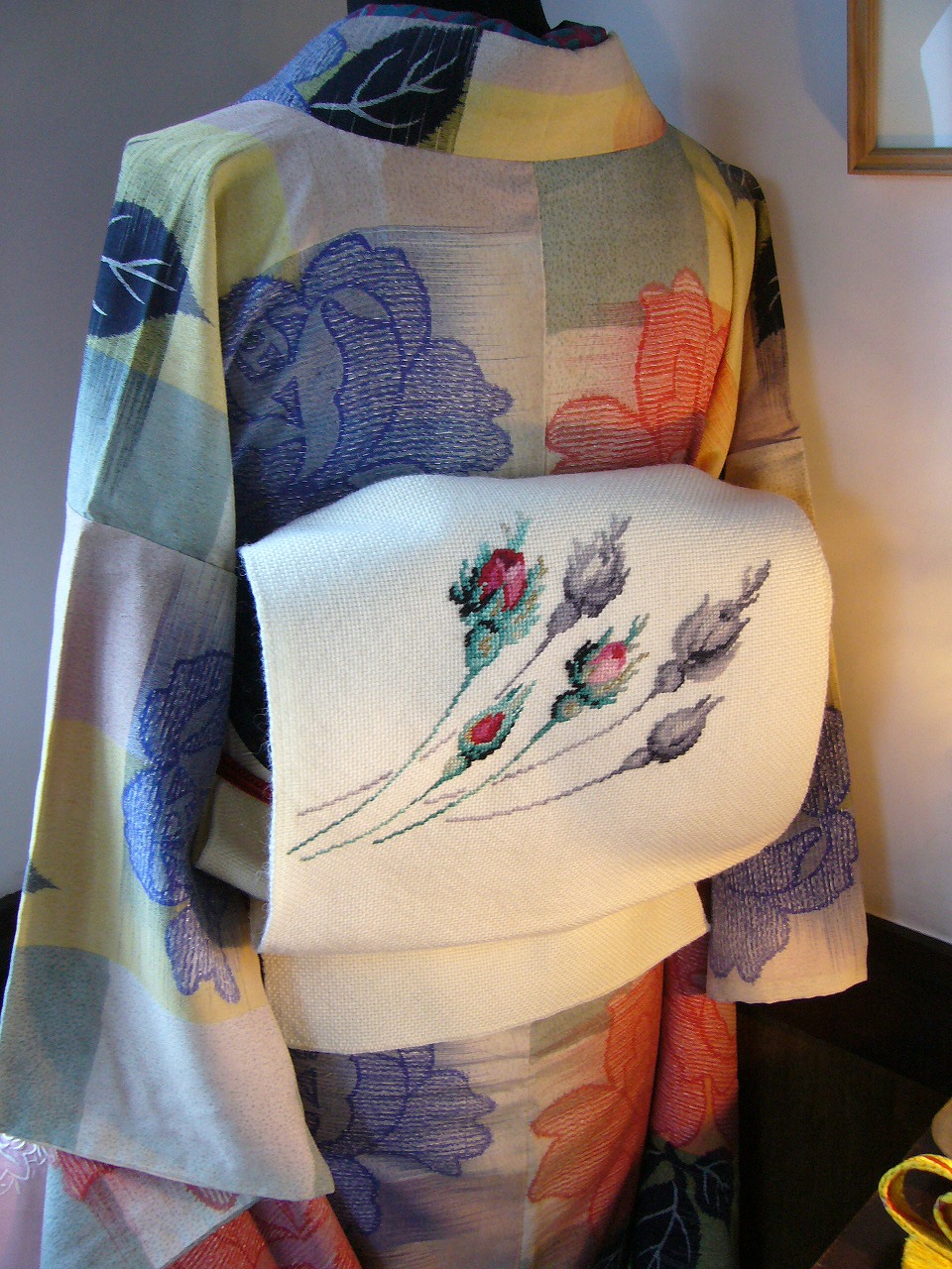 黒地に小さな薔薇模様のお着物を解いた帯揚げ。