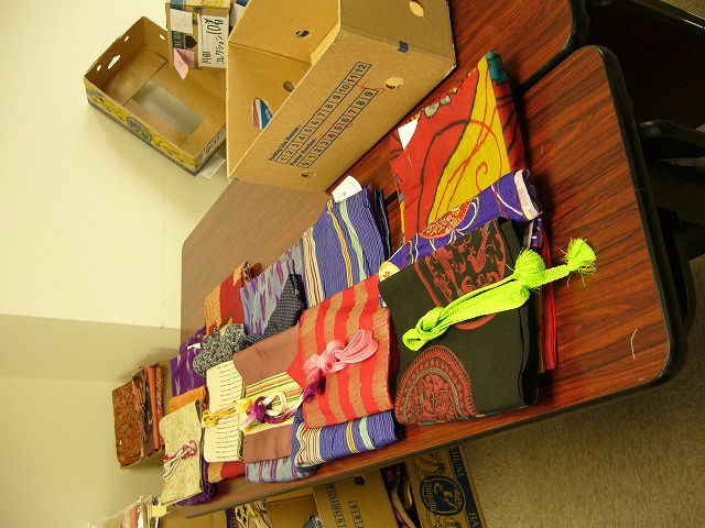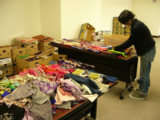 サイズ分けしてこれが終わるとお次は半襟縫い付け隊!