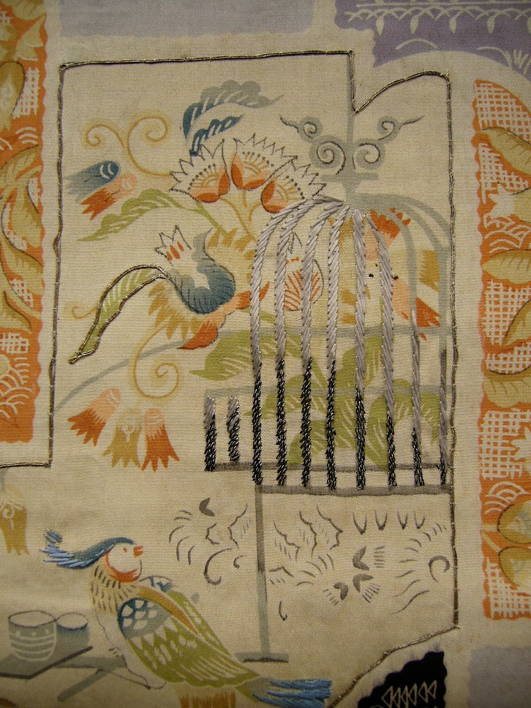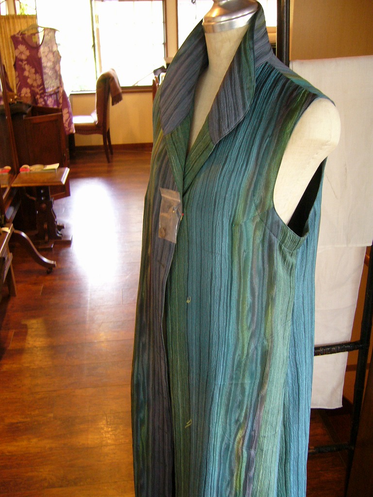 ~~かやぶきの家で着物(新、古、アンティーク)を中心として残糸縫のバッグ(川内千明作)、