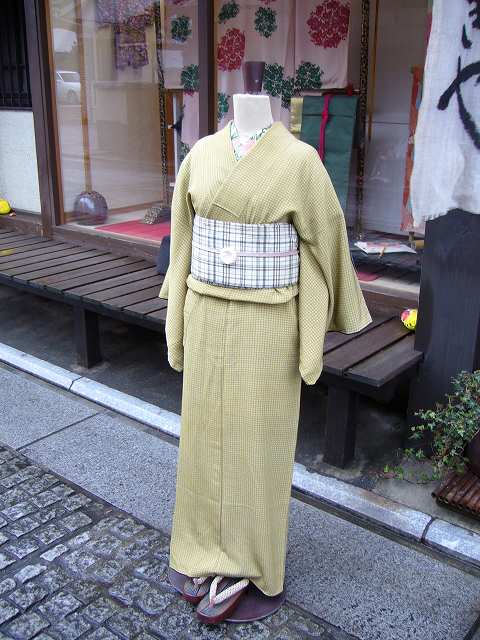 黄緑色の半幅帯を合せました。