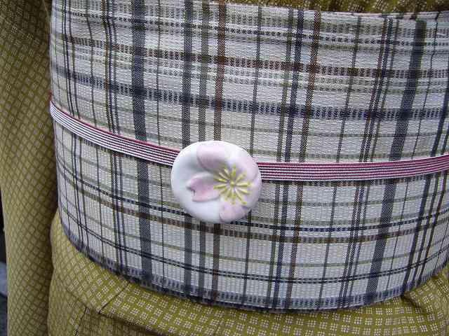 帯留には優しい色合いの桜。