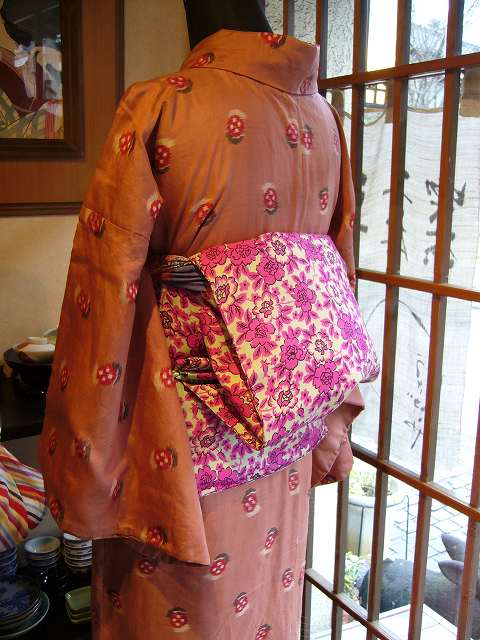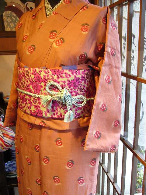 こちらは銘仙です。ピンクにたっくさんのイチゴ!