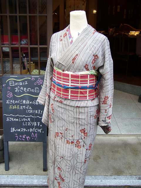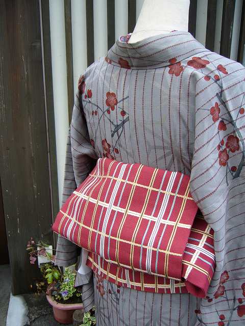 こちらは、今の季節にピッタリ。グレーがベースの梅が描かれたお着物。なんだか上品なイメージ。