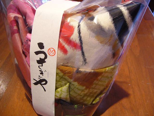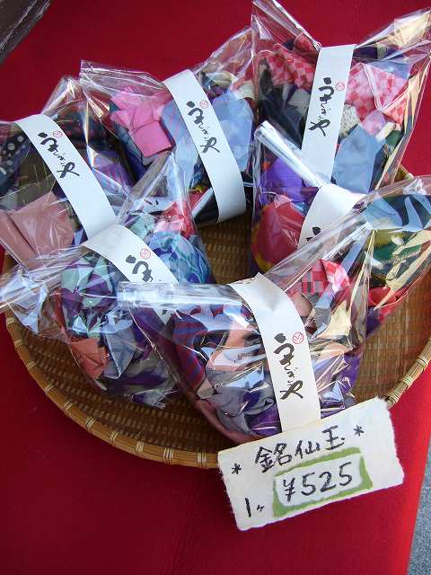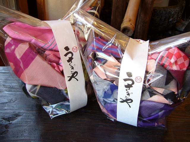中には色とりどりの銘仙のハギレが入っています。