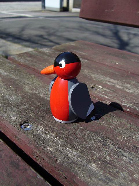 ベンチで日向ぼっこの図。