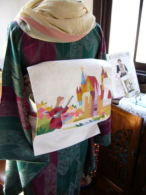 メルヘンな雰囲気の白地・名古屋帯。森の中を散歩したくなるようなコーデ。