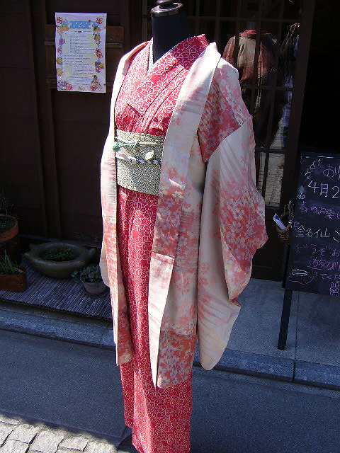 赤地の桜のお着物。