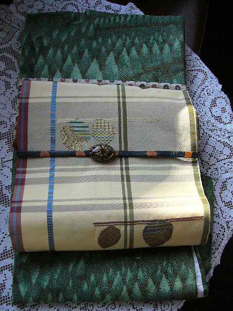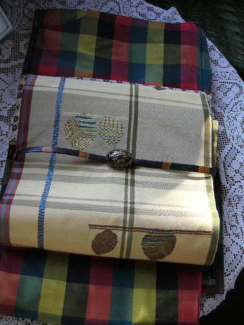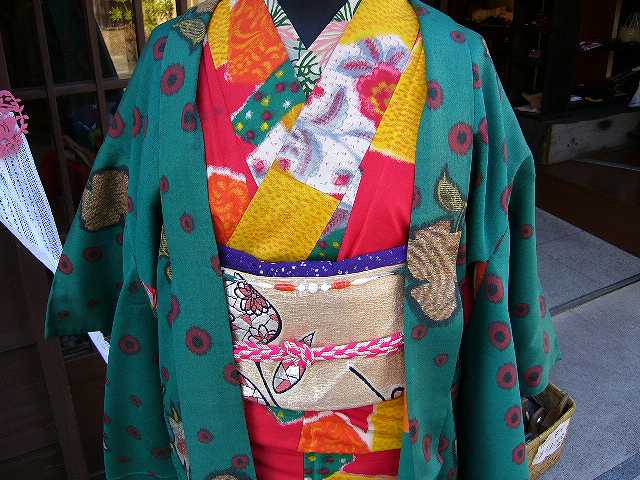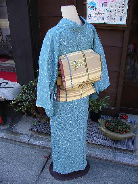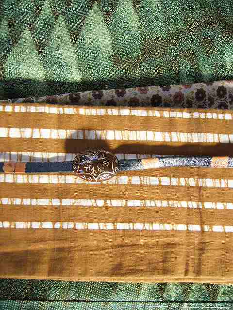 ちなみに緑の染大島に半幅帯を合せて見るとこんな感じ。