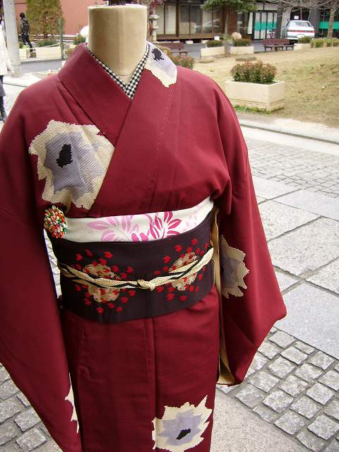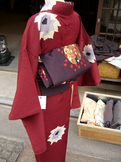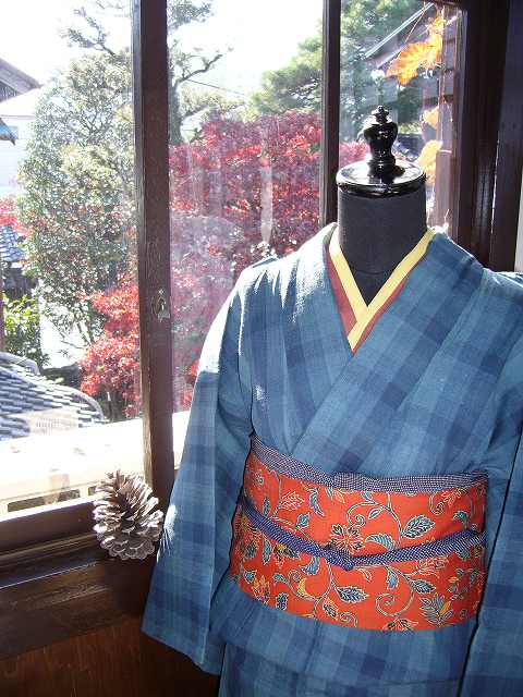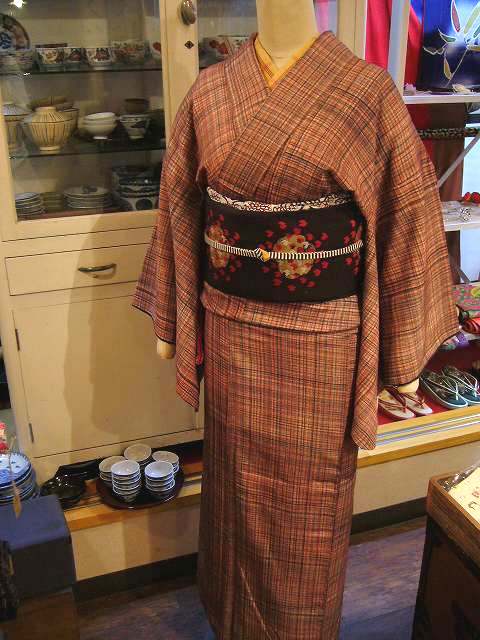 織物自体は戦前のものがほとんどという銘仙街着セットをレンタルで着用でき、