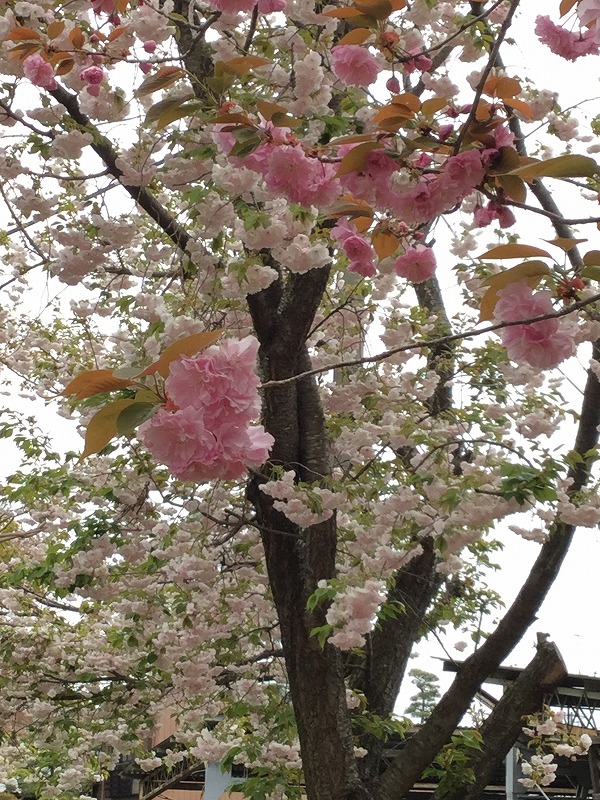 うさぎや前の公園の八重桜も見ごろになりはじめました。