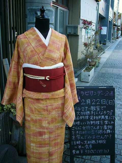 空気が冷たくても、確実に明るめの着物や小物に目が行きます。