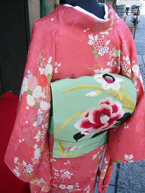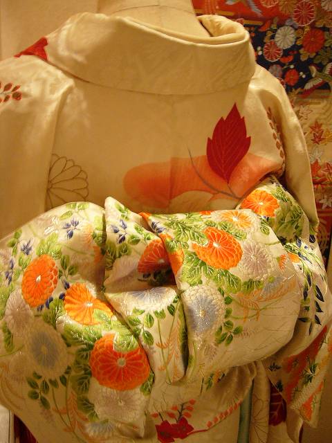 帯は椿と水仙が刺繍してあります。